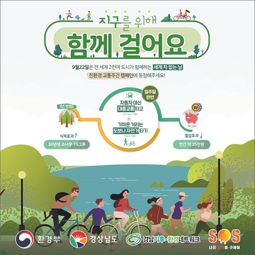 경남도가 16일부터 22일까지 '친환경 교통주간'을 운영한다. 이는 '세계 차 없는 날(22일)'을 맞아 저탄소 교통생활 실천 확산을 유도하기 위해 추진하는 캠페인이다.