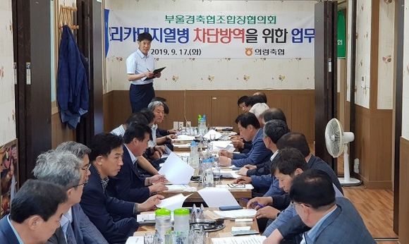 경남농협은 17일 부산·울산·경남 축협조합장들과 아프리카 돼지열병 확산 방지를 위한 긴급회의를 의령축협 대회의실에서 개최했다고 밝혔다.