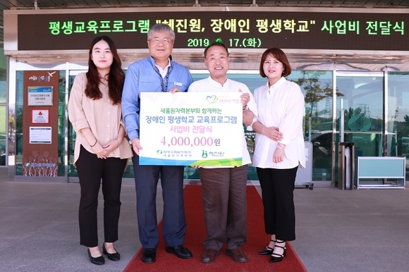 한국수력원자력 새울원자력본부는 17일 새울본부 본관에서 언양읍에 위치한 중증장애인 거주시설인 혜진원의 평생교육프로그램 지원을 위한 사업비 400만 원을 전달했다고 밝혔다.