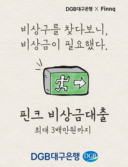 DGB대구은행 관계자는 “핀크와 함께 출시한 금번 비상금대출은 소액이지만 금융거래정보가 부족해 1금융권의 금융지원을 받지 못했던 고객들도 편리하게 이용할 수 있도록 개발한 상품”이라며 “핀테크 전문기업의 기술력이 융합된 비상금대출 상품을 통해 소액 생활자금을 필요로 하는 고객들을 위한 포용적 금융환경 조성에 더욱 힘쓸 것”이라는 뜻을 전했다.