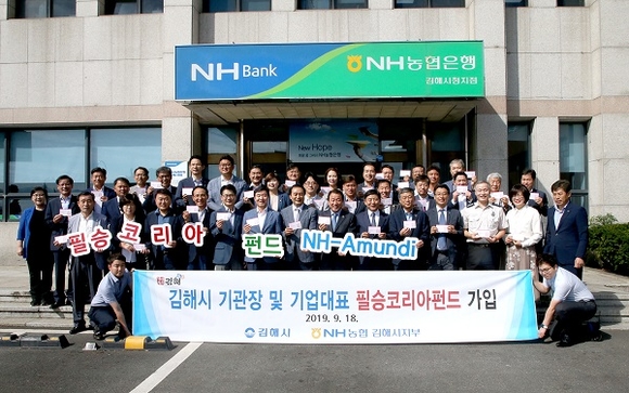 김해시와 농협 김해시지부는 18일 오전 농협 김해시청지점에서 허 시장, 김형수 시의회 의장과 시의원, 기관장, 기업체 대표, 농협 임원 등 30여명이 참여한 가운데 필승코리아 펀드 가입행사를 개최했다.