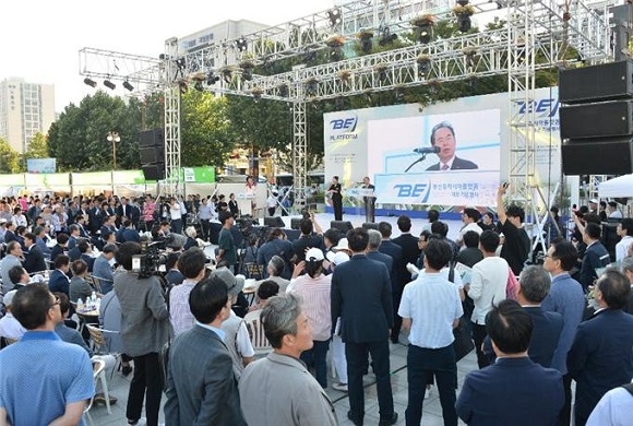 부산시는 지난 19일 오후 부산역 광장에서 오거돈 시장과 박인영 시의회 의장을 비롯한 수많은 인사가 참석한 가운데 부산 유라시아플랫폼 광장 개관식을 열었다.