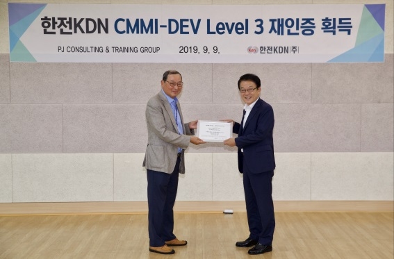 한전KDN은 최근 미국 CMMI Institute로부터 CMMI 개발(Dev) 분야 Level Ⅲ 재인증을 획득했다고 20일 밝혔다. 이로써 한전KDN은 2010년 최초 인증 이후 3회 연속 재인증에 성공했다.