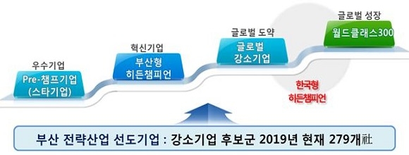 전략산업 선도기업은 ‘프리 챔프기업’ ‘부산형 히든챔피언’ ‘글로벌 강소기업’ ‘월드클래스 300’으로 이어지는 성장단계별 강소기업 육성 지원 정책의 시작점이다.