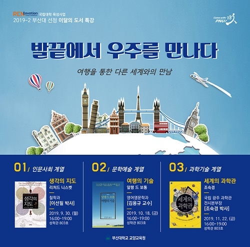 부산대는 하반기 독서 주제를 ‘발끝에서 우주를 만나다’로 정하고 삶에 대한 통찰과 건강한 생활의 힘을 기르고자 ‘생각의 지도’, ‘여행의 기술’, ‘세계의 과학관’ 등 3권의 고전을 선정했다.