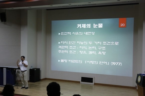 초빙 강사로 나선 서울대 철학과 김상환 교수는 ‘2045년에는 인간이 인공지능을 통제할 수 없게 되는 시점이 온다’는 전문가의 말을 인용하며 “궁극적으로는 인간이 로봇의 지배를 받게 되는 대전환의 시점이 다가온다”고 말했다. 그는 “그럼에도 인공지능이 할 수 없는 것이 바로 예술적 창조이며 그것과 맞물린 반성적 판단”이라고 설명했다.