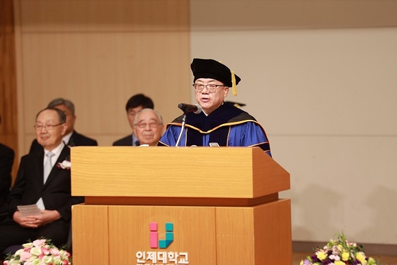 인제대학교는 제8대 총장 전민현 박사의 취임식이 24일 김해캠퍼스 장영실관 대강당에서 열렸다고 밝혔다. 이날 취임식에는 지역 기관장, 학생, 교직원 등 내·외 인사 500여 명이 참석했다.
