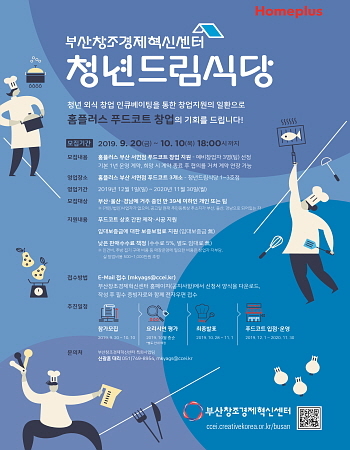 부산창조경제혁신센터가 홈플러스㈜와 함께 청년 외식 창업의 산실인 ‘청년드림식당’ 1~3호점에 입점할 2기 창업가를 모집한다고 24일 밝혔다.