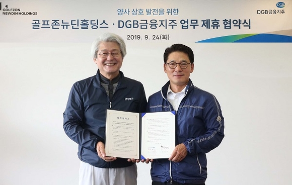 DGB금융지주는 24일 골프존카운티 선산에서 골프존뉴딘홀딩스와 양사 상호발전을 위한 업무제휴 협약을 체결했다고 밝혔다.