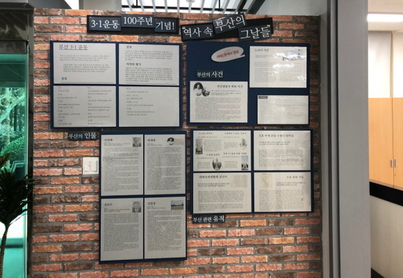 역사 속 부산의 그날들 전시회는 부산지역에서 발발했던 3.1 운동의 역사와 인물, 유적 등을 소개해 향토 애국선열들의 독립 정신을 기리는 전시회다.