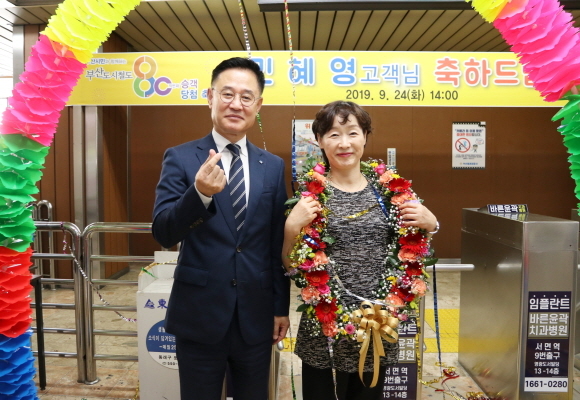 부산교통공사가 부산도시철도에 80억번째로 탑승한 승객을 위해 감사 이벤트를 열었다.