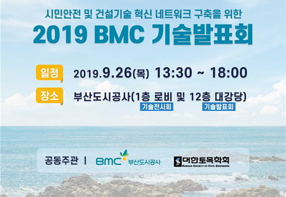부산도시공사가 오는 26일 본사에서 대한토목학회 부산·울산·경남지회와 공동으로 ‘2019 BMC 기술발표회’를 개최한다고 25일 밝혔다.