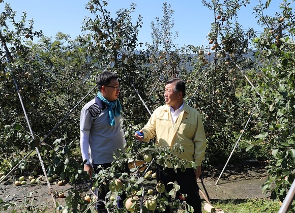 박일호 밀양시장은 24일, 제17호 태풍의 영향으로 농작물 도복 및 낙과, 시설하우스 파손 등 피해를 입은 농가를 찾아 위로했다.