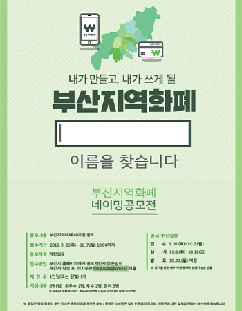 부산시는 지역화폐에 대한 시민의 관심과 참여로 공감대를 형성해 빠른 시일 내 정책이 안정적으로 정착할 수 있도록 ‘네이밍’ 공모를 한 것이라고 설명했다.