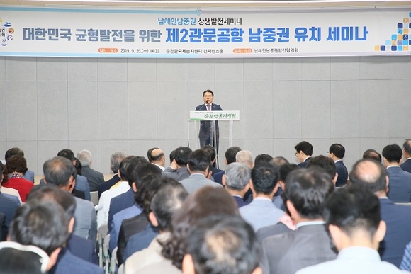 경북대 이철우 지리학과 교수, 광주대 이민원 교수, 경남과학기술대학교 이웅호 교수 등은 25일 전남 순천만 국가정원에서 열린 '대한민국 균형발전을 위한 제2관문공항 남중권 유치 세미나'에서 이같이 주장했다.