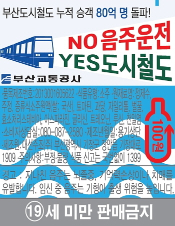 주류업체와의 협업도 눈길을 끌고 있다. 공사와 ㈜대선주조는 협업을 통해 이달 말부터 ‘음주 후 도시철도 이용’을 장려하는 문구가 부착된 대선소주 제품을 선보인다.