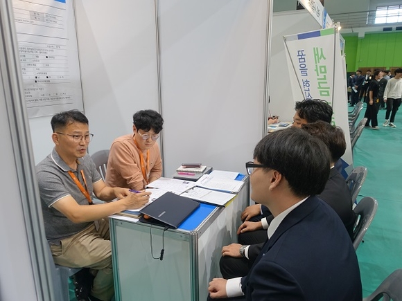 이날 행사에는 두온시스템, 에너토크 등 공기업의 협력중소기업을 포함한 다양한 업종의 37개 사가 직접 참여했고 10개 사는 간접 참여했다. 또 구직을 희망하는 대학생과 특성화고 졸업예정자 등 1000여 명 취업희망자가 참석했다.