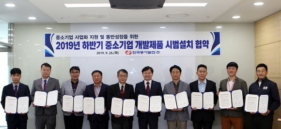 한국동서발전은 26일 오후 2시 본사(울산 중구 소재)에서 9개 중소기업과 함께 중소기업이 자체 개발한 제품의 성능 및 신뢰성 실증 지원을 위한 시범설치사업 협약을 체결했다고 밝혔다.