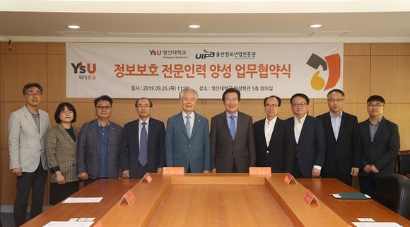 와이즈유(영산대학교) 컴퓨터공학부는 26일 양산캠퍼스 천성학관에서 울산정보산업진흥원과 ‘울산권역 정보보호 전문인력 양성을 위한 업무협약’을 체결했다고 27일 밝혔다.