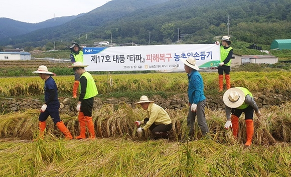 농협창원시지부와 진북농협은 27일 진북면 금산마을에서 제17호 태풍 타파로 피해를 입은 농가를 방문해 피해복구를 위한 일손돕기를 실시했다고 밝혔다.
