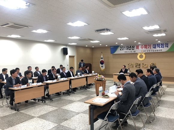 경남농협은 30일 의령농협 회의실에서 RPC운영 부울경협의회 회원인 산지농협 조합장 18명이 참석한 가운데 ‘2019년 RPC운영 부울경협의회 벼 수확기 대책회의’를 개최했다. 이날 회의에서는 쌀값 안정화를 위한 대책 논의와 수확기 원활한 벼 매입을 위한 다각적인 대책을 마련해 추진하기로 했다.