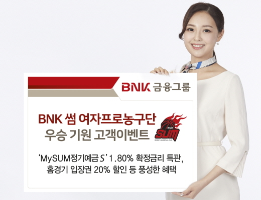 BNK금융지주 유영준 시너지추진팀장은 “올 시즌 BNK 썸 여자프로농구단이 멋진 활약을 펼칠 수 있도록 고객 여러분의 많은 응원을 기대한다”며 “앞으로도 다양한 이벤트를 통해 BNK금융그룹을 아껴주시는 고객에게 실질적 혜택을 드릴 수 있도록 노력하겠다”고 전했다.