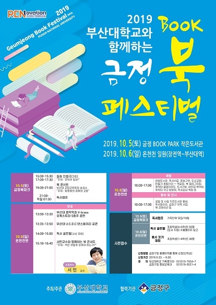 부산대학교는 시민 참여형 문화 축제인 ‘2019 부산대학교와 함께하는 금정 북 페스티벌’을 오는 5일과 6일 부산 금정구 부곡동에 위치한 금정북파크 작은도서관과 온천천변(지하철 장전역~부산대역)에서 개최한다고 2일 밝혔다.