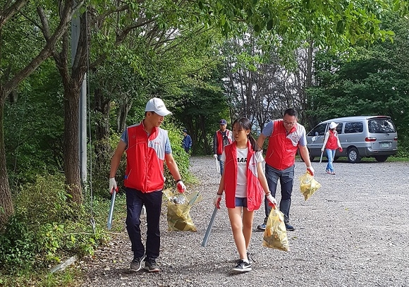 이날 임직원과 가족 30여 명은 천수교를 출발해 망진산봉수대를 되돌아오는 총 4km 코스를 걸으며 주변 쓰레기를 수거했다. 또 참여 인증샷을 해시태그(#plogging #플로깅 #줍깅)와 함께 인스타그램에 게시해 플로깅 동참을 유도했다.