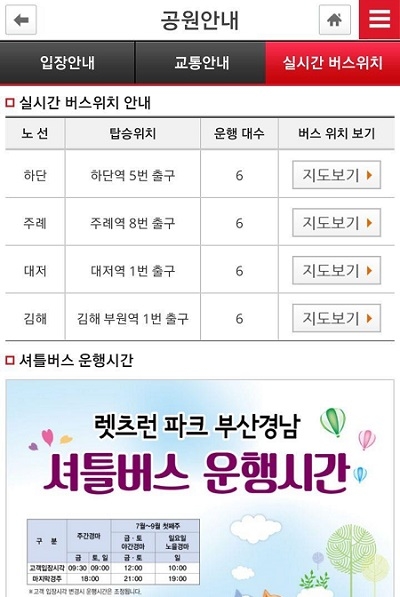 렛츠런파크 관계자는 ”그간 많은 사람들이 이용하고 있지만, 실시간으로 위치정보를 확인할 수 없어 차량정체 등 도착이 지연될 경우 버스 이용에 불편함이 있었다”고 말했다.