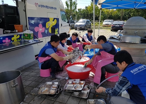 지역사회와의 유대관계 강화를 위해 진행된 이번 봉사활동은 원재연 건설처장을 비롯한 한수원 건설처 봉사단과 동천동 ‘친절한 경자씨’ 등 50여 명의 봉사자가 식사 준비 및 배식, 설거지를 도왔다.