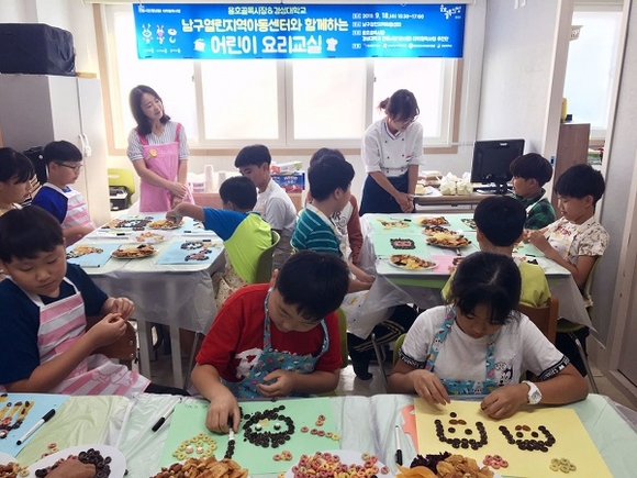 경성대학교는 지난달 18일 부산시 ‘남구열린지역아동센터’에서 ‘용호골목시장&경성대학교 전통시장대학협력사업’의 일환으로 ‘2019년 어린이 요리교실’을 개최했다고 11일 밝혔다. 이날 행사에는 용호초등학교와 백운초등학교 학생 16명이 참여했다.