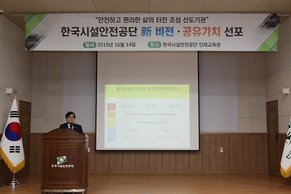 한국시설안전공단(이하 공단)은 14일 공단 인재교육관 대강의실에서 ‘한국시설안전공단 新비전 선포식’을 노사공동으로 개최했다고 밝혔다.