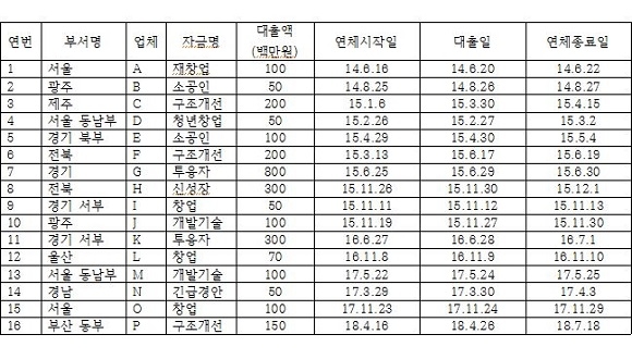 정책 자금 대출 연체기업에 재대출을 해준 건은 11개 부서에서 총 16건, 27억원 상당이 적발됐다.