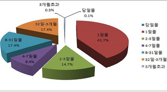 그 가운데 7일 이내 초단기물은 187조 1000억원이 발행돼 전체 발행의 64.9%를 차지했다. 이는 전년동기대비 9.7%(20조 2000억원) 감소한 것으로 직전분기대비로는 1.7%(3조 2000억원) 증가했다.