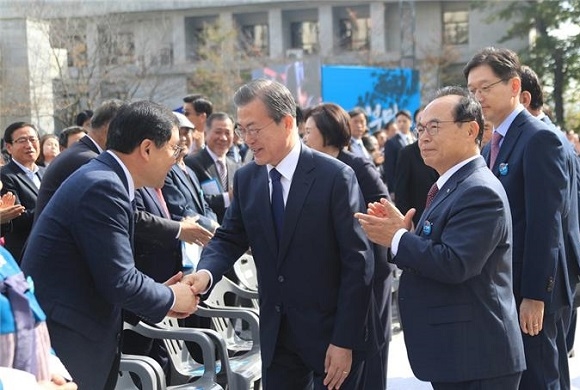 부산시와 경남도가 지난 16일 오전 10시 경남대학교에서 문재인 대통령, 오거돈 부산시장, 김경수 경남도지사, 지역 각계 인사 및 시민 3000여명이 참석한 가운데 ‘제40주년 부마민주항쟁 기념식’을 첫 정부 주관 행사로 열었다고 밝혔다.