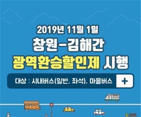 내달 1일 창원-김해간 광역환승할인제가 시행되면, 기존에는 동일 시내 버스간 환승 시에만 적용되던 환승할인 혜택을 창원과 김해 두 도시간 버스 환승 시에도 대중교통(시내·마을버스) 할인 혜택 받을 수 있게 된다.