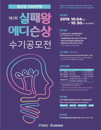 부산시와 부산경제진흥원이 창업 실패에 대한 사회적 인식 개선과 재도전에 대한 사회적 공감대 마련을 위한 ‘제2회 실패왕 에디슨상 수기 공모전’을 오는 30일까지 마감한다고 22일 밝혔다.