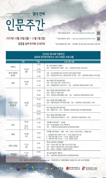 경성대학교 한국한자연구소 HK+사업단은 제14회 인문주간을 맞아 오는 29일부터 11월 1일까지 다양한 인문학 행사를 개최한다고 22일 밝혔다.