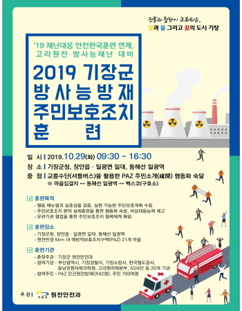 이번 훈련은 ‘원자력시설 등의 방호 및 방사능방재대책법 제37조’에 근거해 진행하는 법정훈련으로 기장군이 주관하고 소방, 경찰, 군부대 등 20여개 관계기관과 주민들이 참여한다.