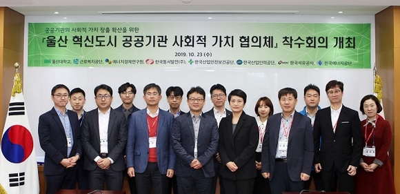 울산지역 혁신도시 7개 공공기관과 울산대학교는 23일 한국동서발전 본사(울산시 중구 소재)에서 공공기관의 사회적 가치 창출 확산을 위한 ‘울산 혁신도시 공공기관 사회적 가치 협의체’를 구성하고 착수회의를 개최했다고 밝혔다.