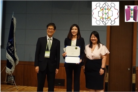 이번 학술대회의 수상자로 선정된 김슬기 씨의 연구주제는 '물레방아 구조를 갖는 황-거대고리의 염소-연결 이핵구리 초분자착물'로 제조법, 구조 및 자기적 성질 면에서 학술적 가치를 높게 인정받았다.