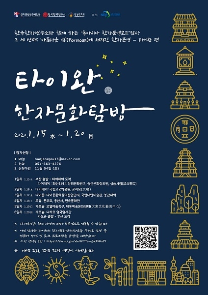 경성대학교 한국한자연구소 HK+사업단(한자문명연구사업단)은 내년 1월 15일부터 20일까지 ‘한국한자연구소와 함께하는 동아시아 한자문명로드 답사 그 세 번째, 아름다운 섬(Formosa)에 새겨진 한자문명 타이완 편‘을 진행한다고 23일 밝혔다.