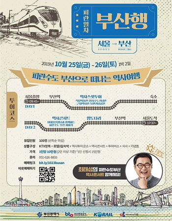 오는 26일에는 유명 역사강사 최태성 강사가 들려주는 역사콘서트가 열리며 이어 영도다리를 방문한 뒤 오후 3시 20분경 부산역을 떠나 서울역으로 가는 일정이다.