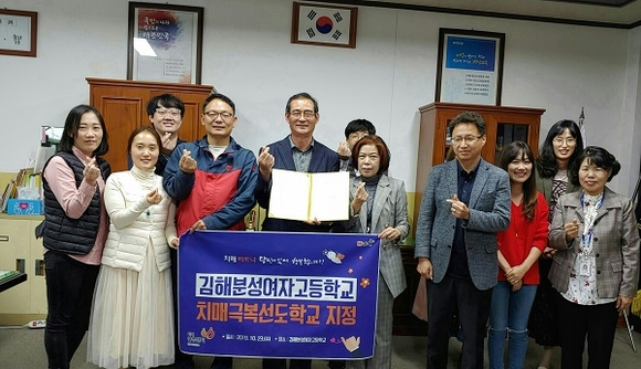 김해시치매안심센터는 23일 치매극복선도학교로 지정한 김해분성여자고등학교에 현판과 지정서를 전달했다고 밝혔다.