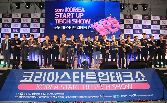 경남도, 창원시, 경남지방중소벤처기업청이 공동 주최하고 8개 창업지원기관이 주관기관으로 참여하는 경남지역 최대 규모 스타트업 축제인 '2019 코리아 스타트업 테크쇼'의 개막식이 23일 창원컨벤션센터(CECO)에서 개최됐다.