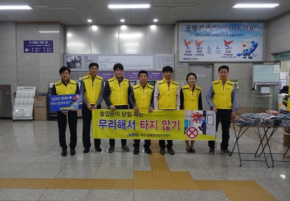 이날 부산김해경전철 임직원들은 철도역사 내 안전수칙 집중 홍보하기 위한 현수막을 설치하고 안전수칙 내용 등이 담긴 홍보물을 제작해 승객들에게 배포했으며 연말까지 지속적으로 열차를 이용하는 승객들에게 홍보하기로 했다.