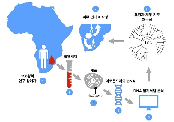 연구진은 L0 혈통의 후손 198명을 새로 찾아 기존 1019개 표본으로 작성된 L0의 하위 계통 출현 연대표를 다시 작성했다. 새 연대표에는 밝혀지지 않았던 희귀 하위 계통이 추가됐다. 유전자 하위 계통의 출현 시점은 이주 시점과 밀접한 관련이 있다. 연구진은 개선된 연대표와 후손들의 언어·문화·지리적 분포 정보를 연계해 최초 이주 경로와 발상지를 추적할 수 있었다.