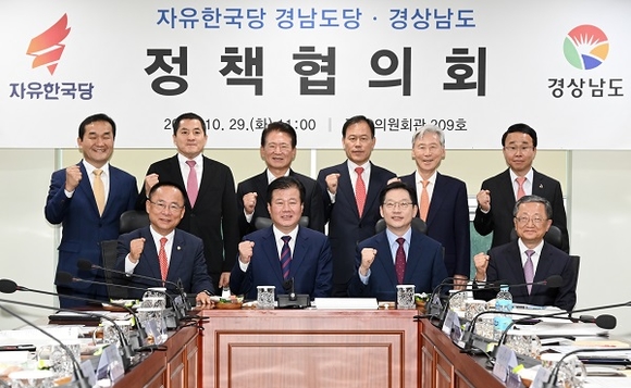 경남도와 한국당 경남도당 간 정책협의회는 지난해에 이어 두 번째로 마련된 자리로 양측은 내년도 국비 확보와 지역 현안사업 지원방안을 논의했다.