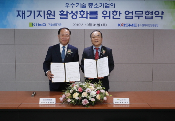 기보는 31일 기보 본사에서 중소벤처기업진흥공단과 ‘우수기술 중소기업의 재기 지원 활성화 위한 협약’을 맺었다고 밝혔다.