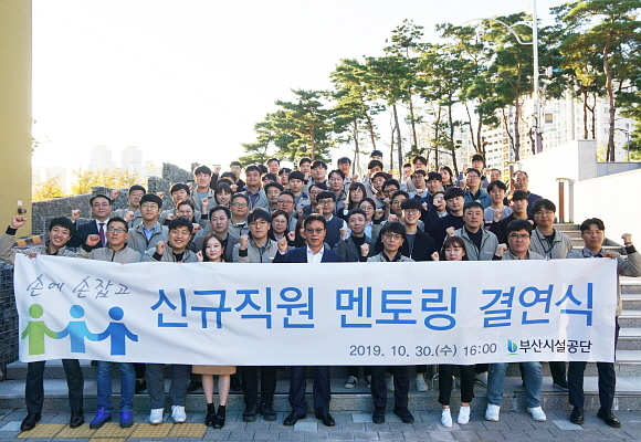 부산시설공단이 지난 30일 오후 부산시민공원 시민사랑채에서 신규직원 멘토링 결연식과 워크숍을 진행했다고 31일 밝혔다.